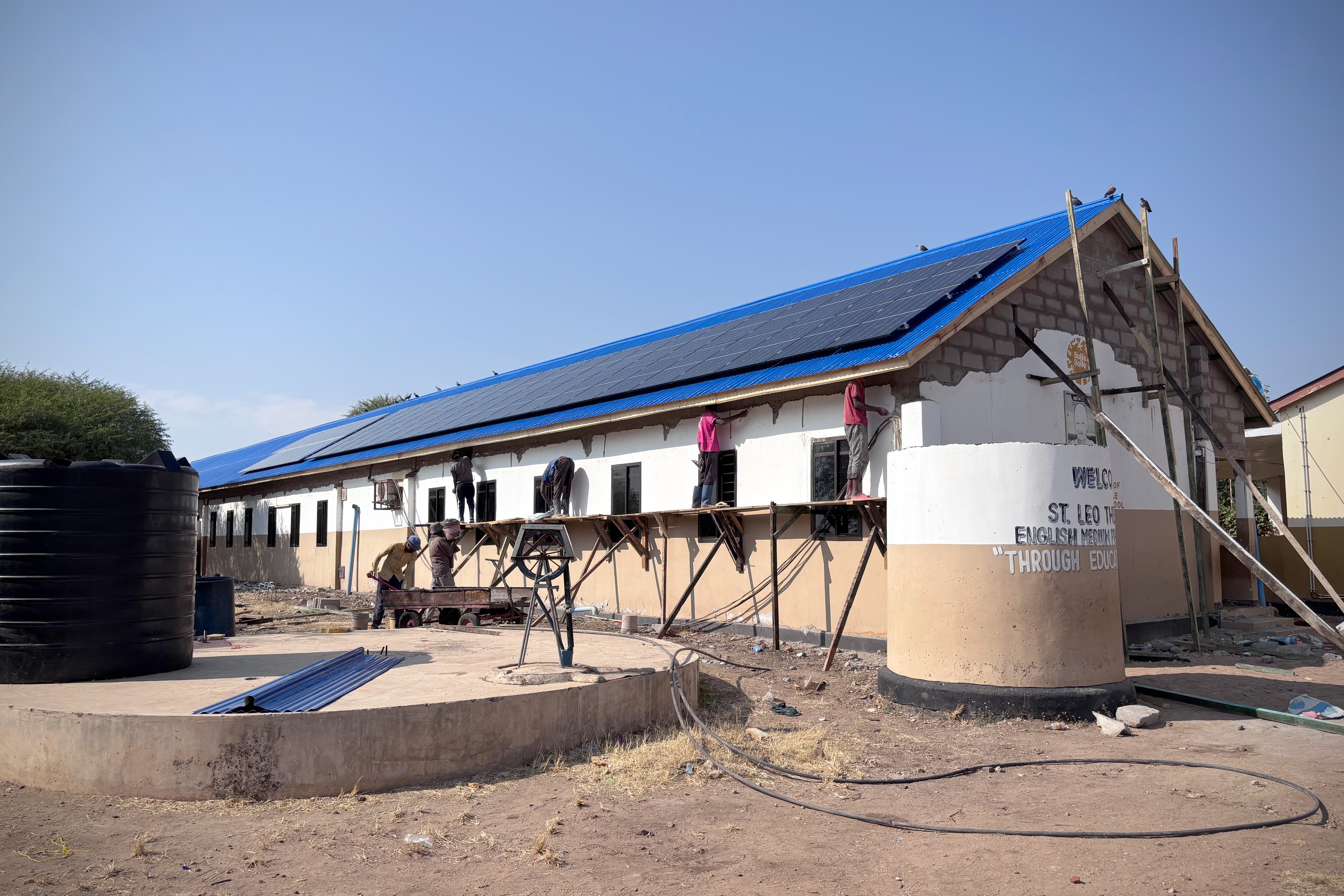 De oude golfplaten waren dringend aan vervanging toe en ook enkele dakgebintes hadden hun beste tijd gehad. Terwijl de leerlingen genoten van 3 weken zomervakantie, ging het volledige dak er dan ook vanaf. We maakten de muren meteen een stukje hoger – een simpele ingreep die een wereld van verschil maakt om de klaslokalen tijdens de hete maanden koeler te houden. Daarna kwamen de gloednieuwe golfplaten erop en last but not least: de uitbreiding van onze solar-installatie.