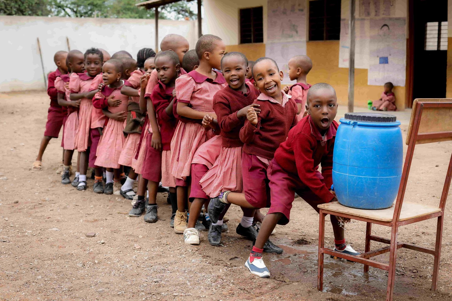 Maar bij gebrek aan keuken werd deze pap tot nu toe nog steeds op de missiepost klaargemaakt. Nadat we in 2021 al twee nieuwe kleuterklassen en een leraarslokaal bouwden, kreeg Bollé Bollé in 2024 de vraag om een keuken en eetzaal te bouwen voor deze kleuterschool. De bouwwerken startten in mei en eind september 2024 werd het nieuwe gebouw volledig opgeleverd. Alweer een hele verbetering voor de kleuters die nu elke ochtend in de nieuwe eetzaal kunnen genieten van een beker pap zonder daarvoor de drukke straat te moeten oversteken naar de voormalige missiepost van pater Bolle.