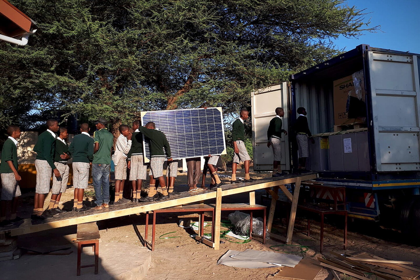Omdat kwaliteitsvol solarmateriaal in Tanzania moeilijk te verkrijgen is, kochten we alles in België aan. Het materiaal verscheepten we nadien per container via de haven van Dar es Salaam naar Igunga.
