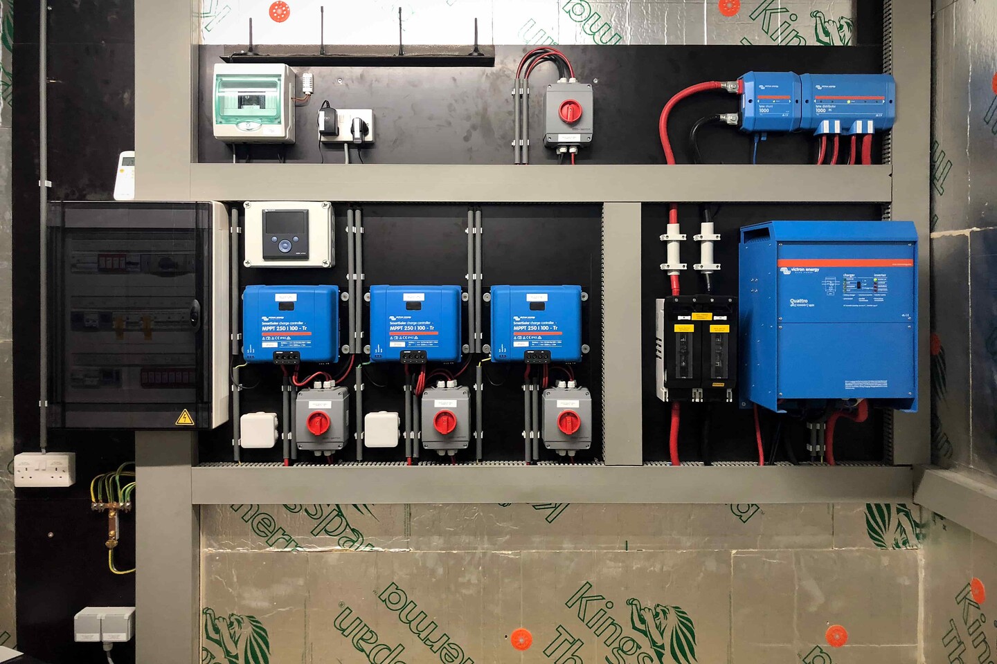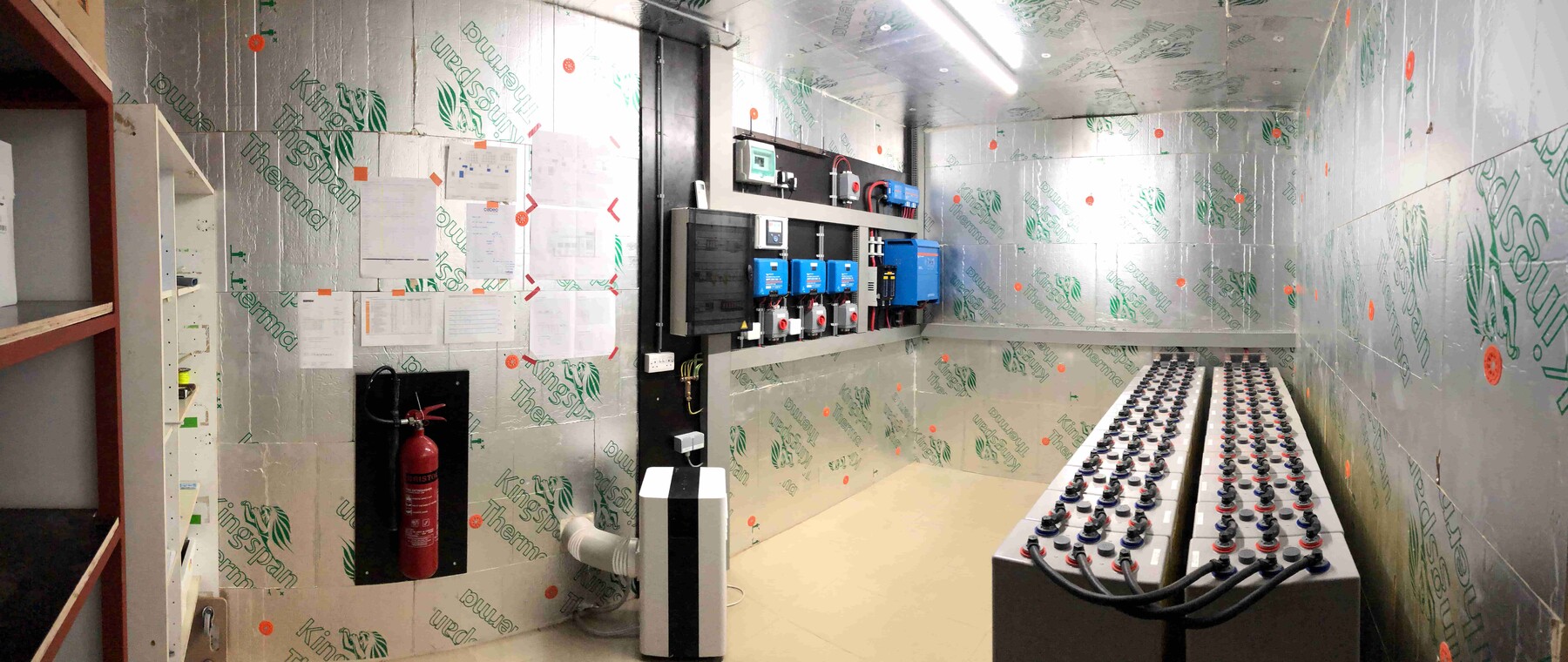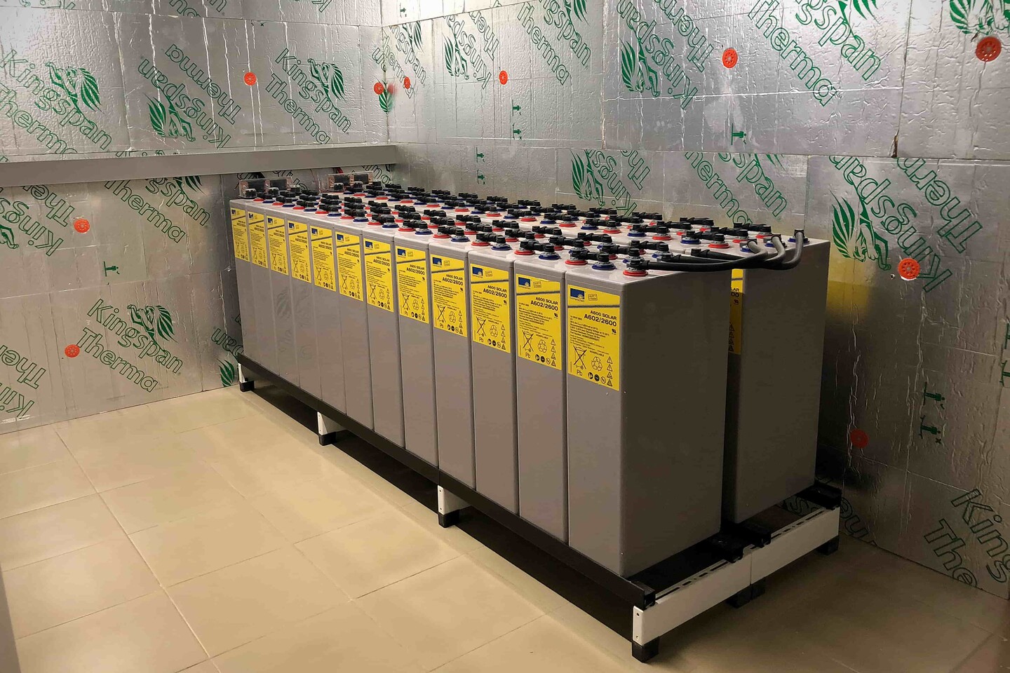 - een grote batterijbank noodzakelijk omdat opgeslagen energie ’s avonds of bij stroompannes moet beschikbaar zijn